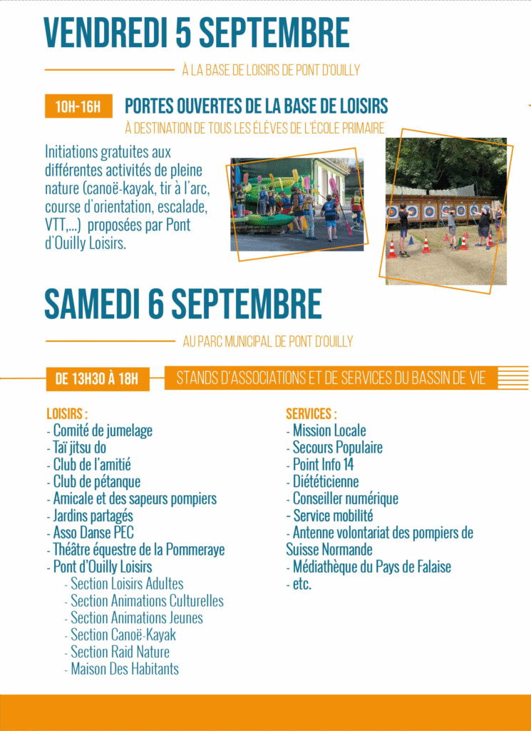 De 13h30 à 20h, profitez d’une journée festive, conviviale et gratuite, ouverte à tous les habitants du bassin de vie de Pont d’Ouilly ! Découvrez les loisirs et services proposés juste à côté de chez-vous !